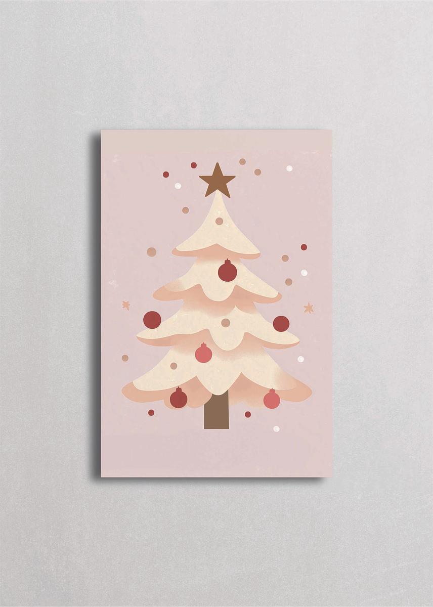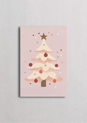 Árbol de Navidad cubierto de nieve con decoración minimalista de esferas rojas y una estrella dorada coronando la cima. Esta interpretación moderna y limpia del árbol tradicional enfatiza la belleza en la simplicidad, donde cada elemento tiene su propósito. Ideal para espacios contemporáneos que buscan celebrar la Navidad con sofisticación y elegancia refinada, sin perder el espíritu festivo esencial.