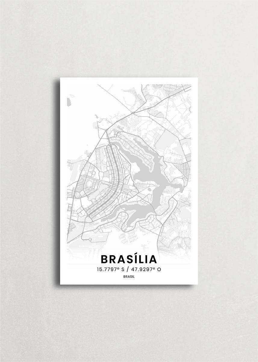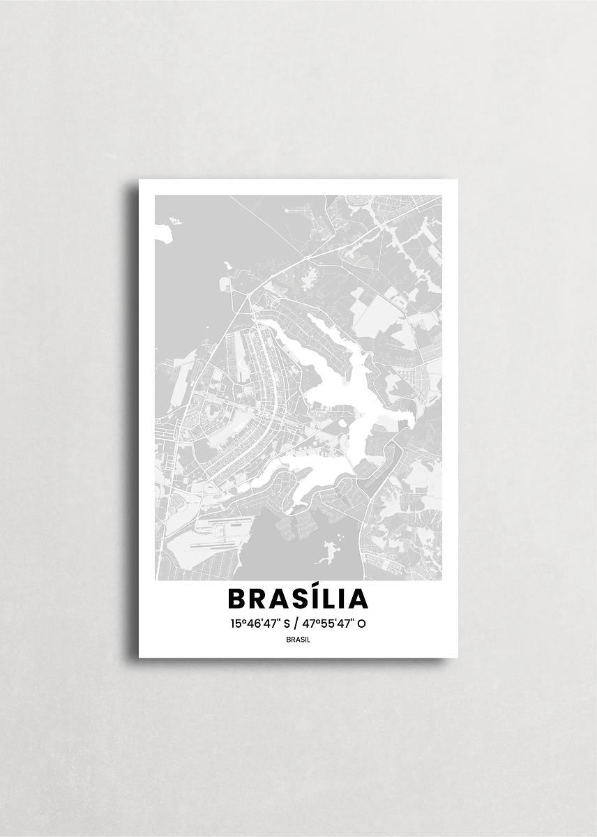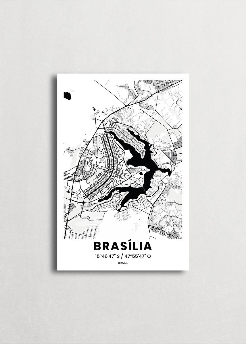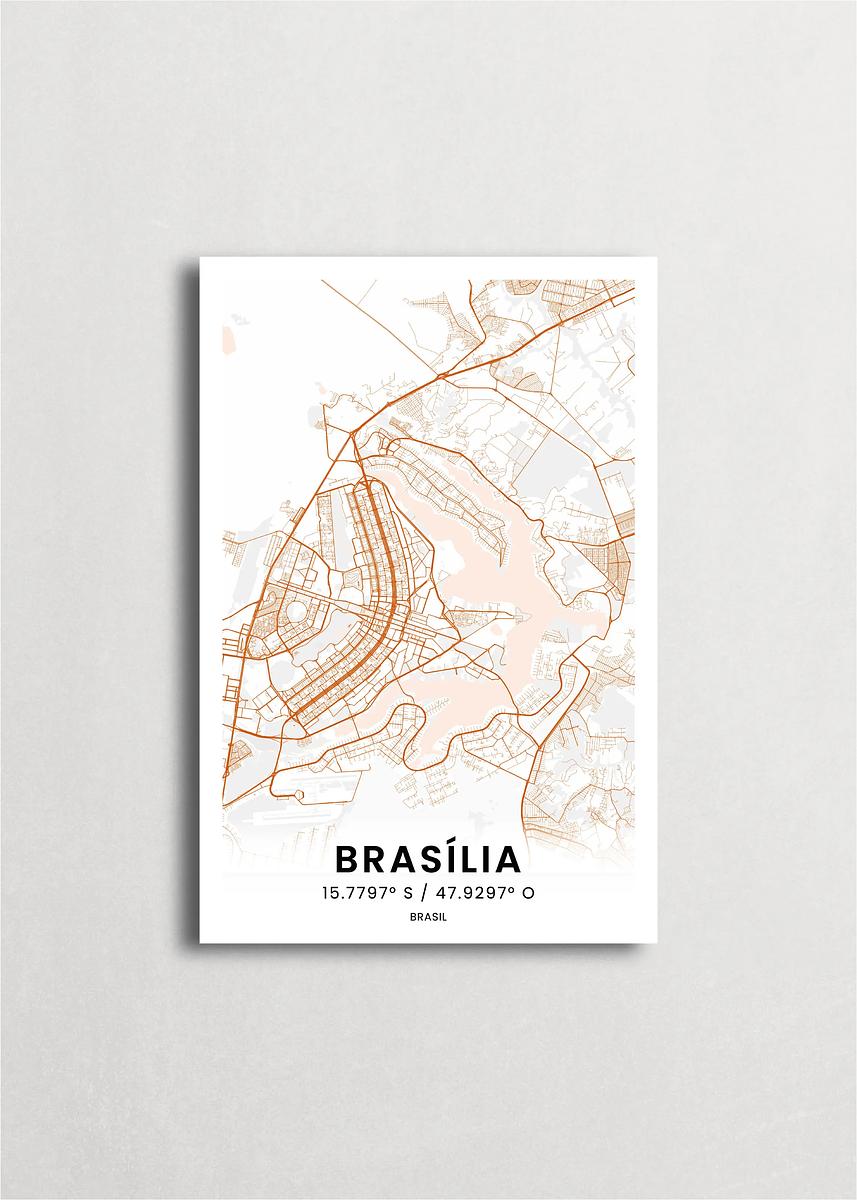 Mapa de la ciudad de Brasilia diseño minimalista que destaca la forma y la estructura de la ciudad. sus colores crean un contraste llamativo que es atemporal y sofisticado.