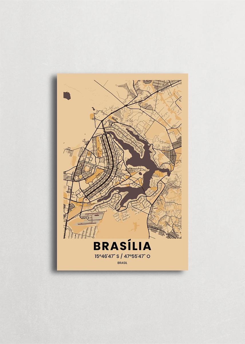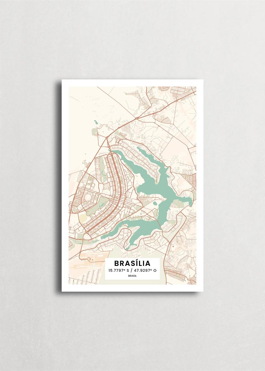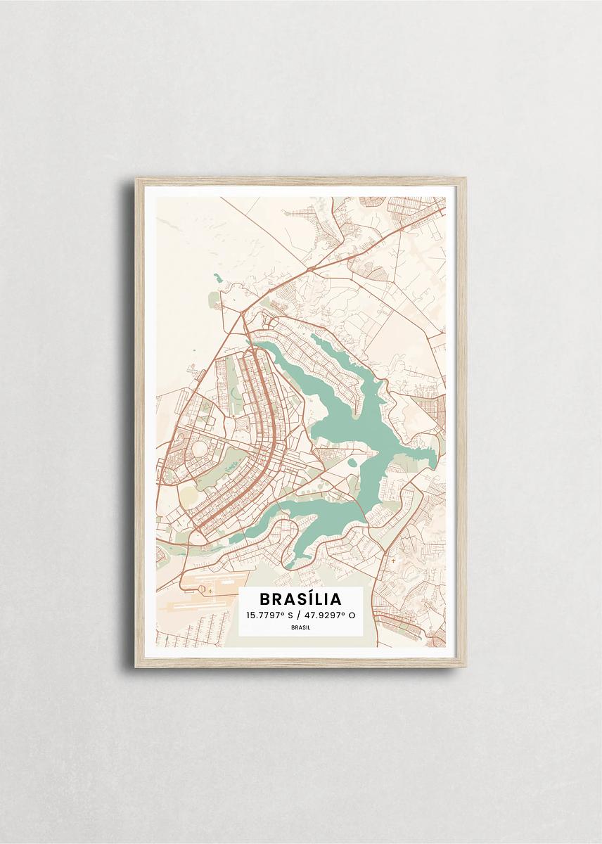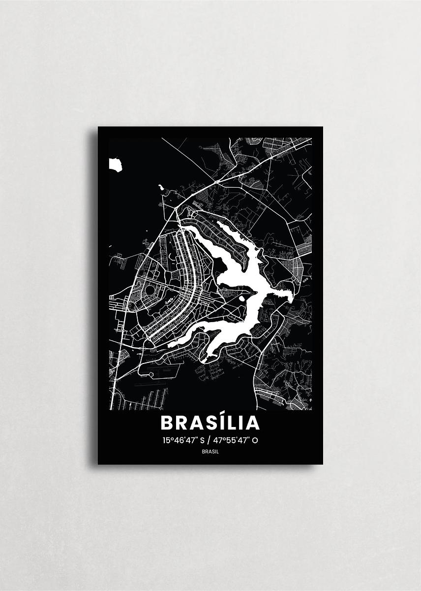 Mapa de la ciudad de Brasilia diseño minimalista que destaca la forma y la estructura de la ciudad. sus colores crean un contraste llamativo que es atemporal y sofisticado.