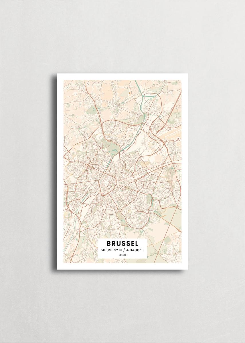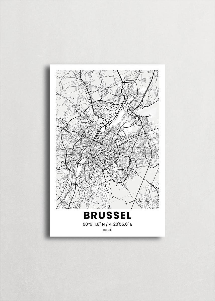 Mapa de la ciudad de Bruselas diseño minimalista que destaca la forma y la estructura de la ciudad. sus colores crean un contraste llamativo que es atemporal y sofisticado.