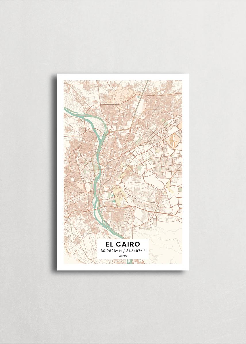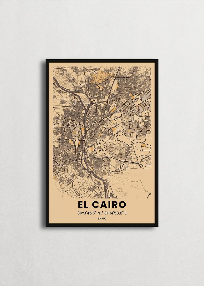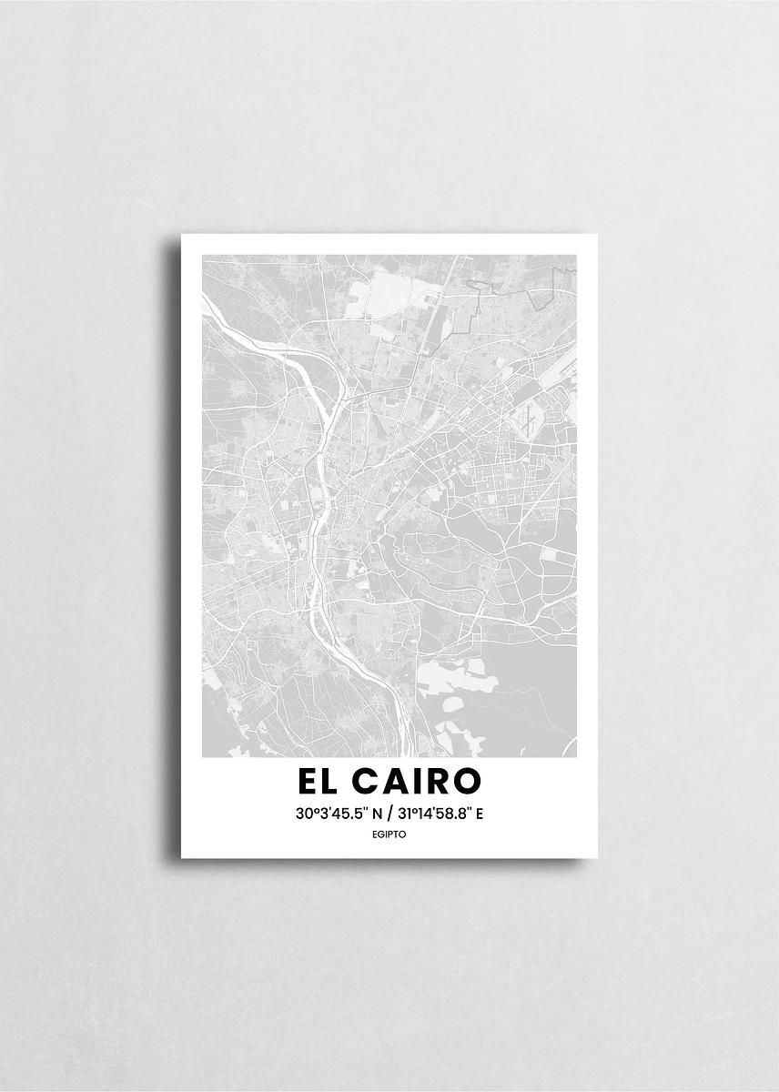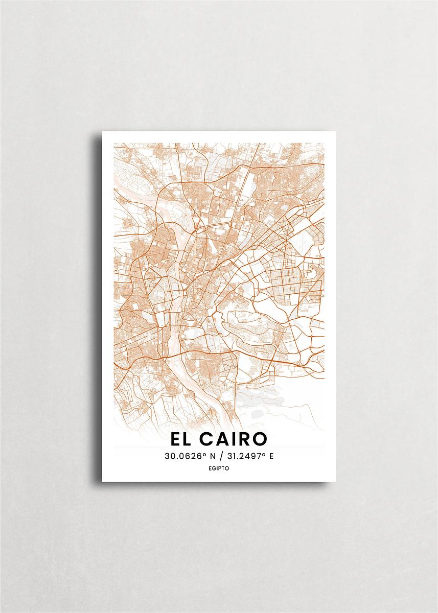 Mapa de la ciudad de Cairo diseño minimalista que destaca la forma y la estructura de la ciudad. sus colores crean un contraste llamativo que es atemporal y sofisticado.