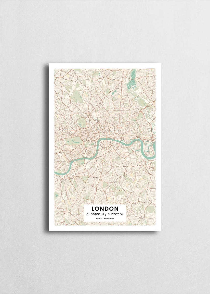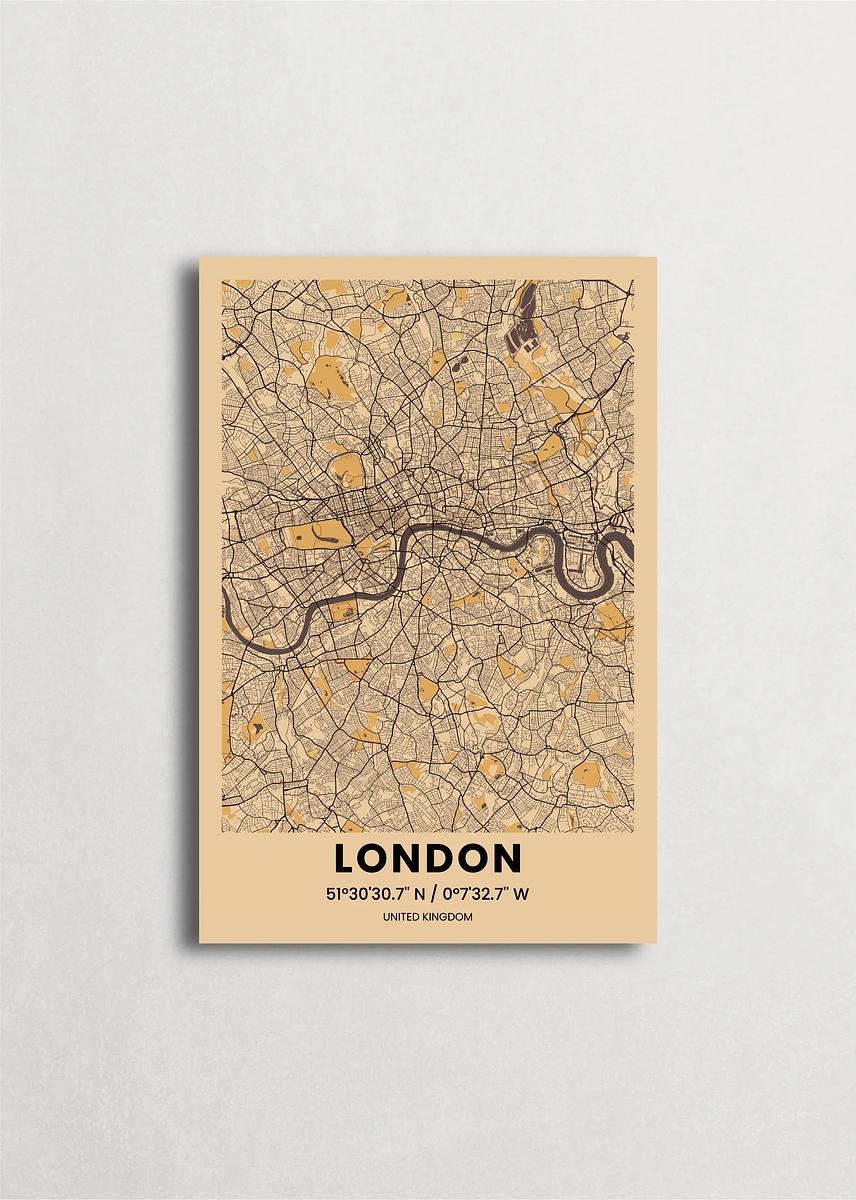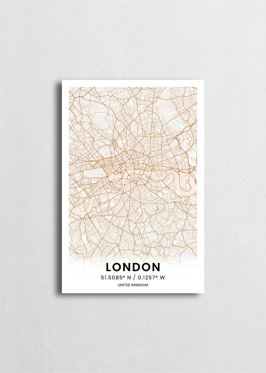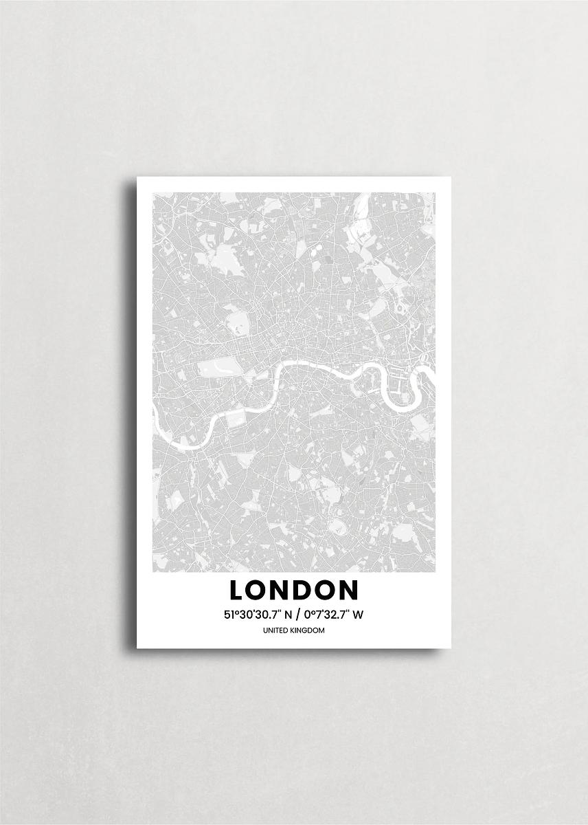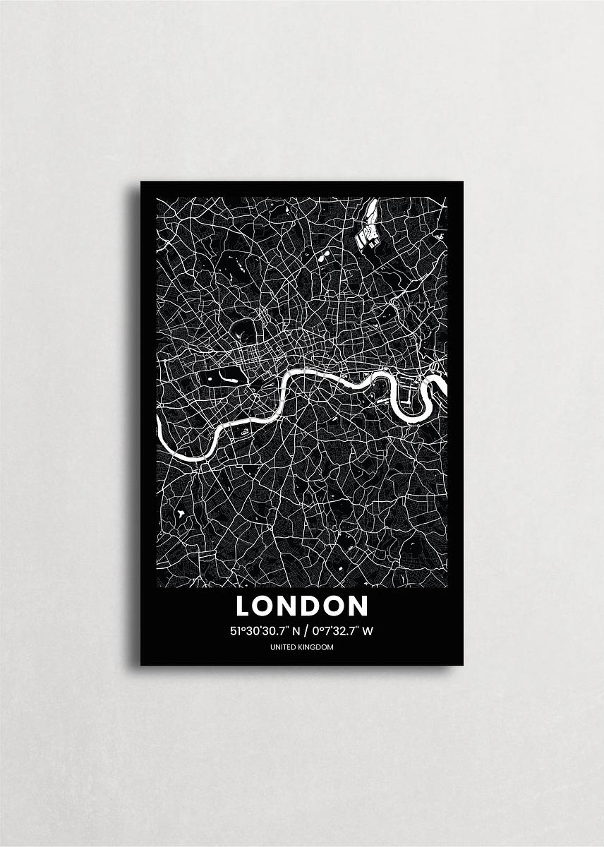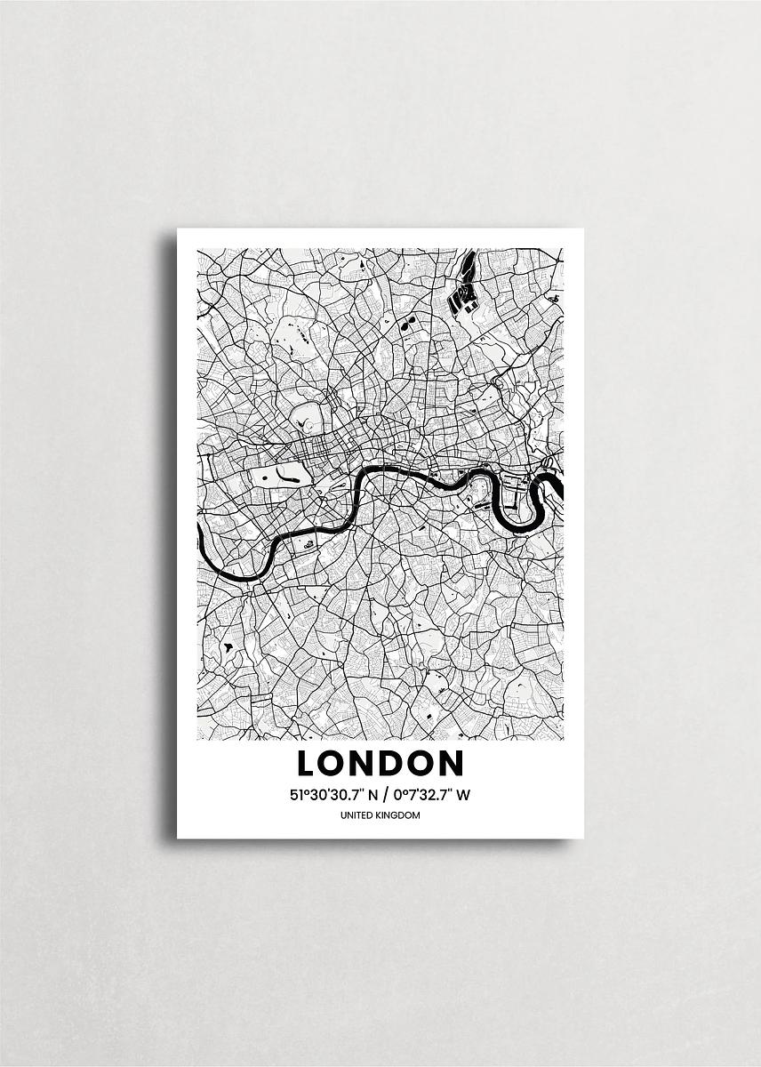 Mapa de la ciudad de London diseño minimalista que destaca la forma y la estructura de la ciudad. sus colores crean un contraste llamativo que es atemporal y sofisticado.