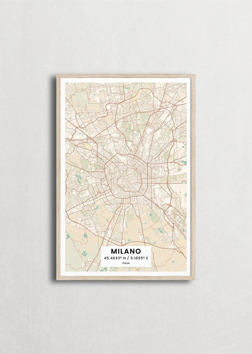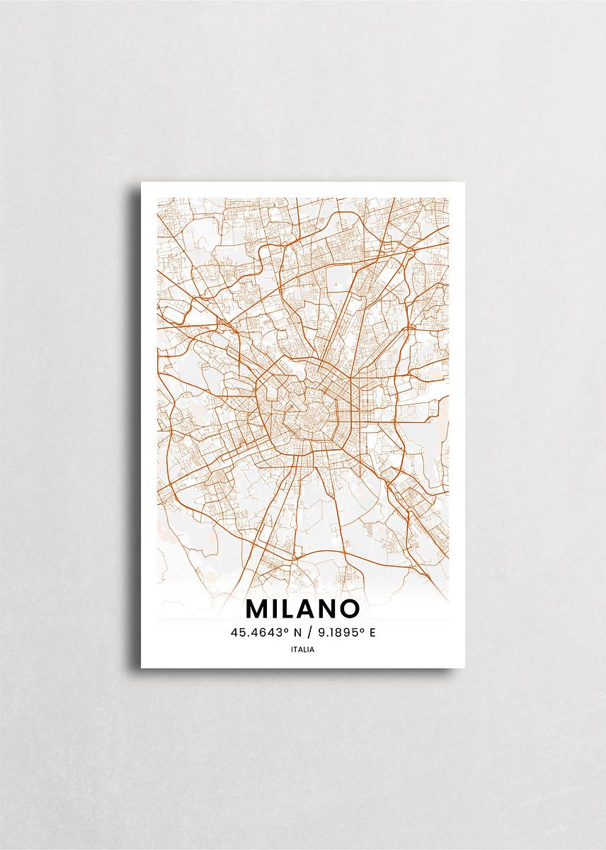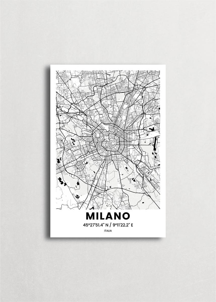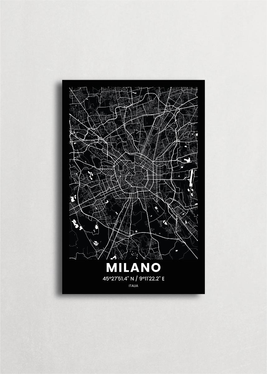 Mapa de la ciudad de Milán diseño minimalista que destaca la forma y la estructura de la ciudad. sus colores crean un contraste llamativo que es atemporal y sofisticado.