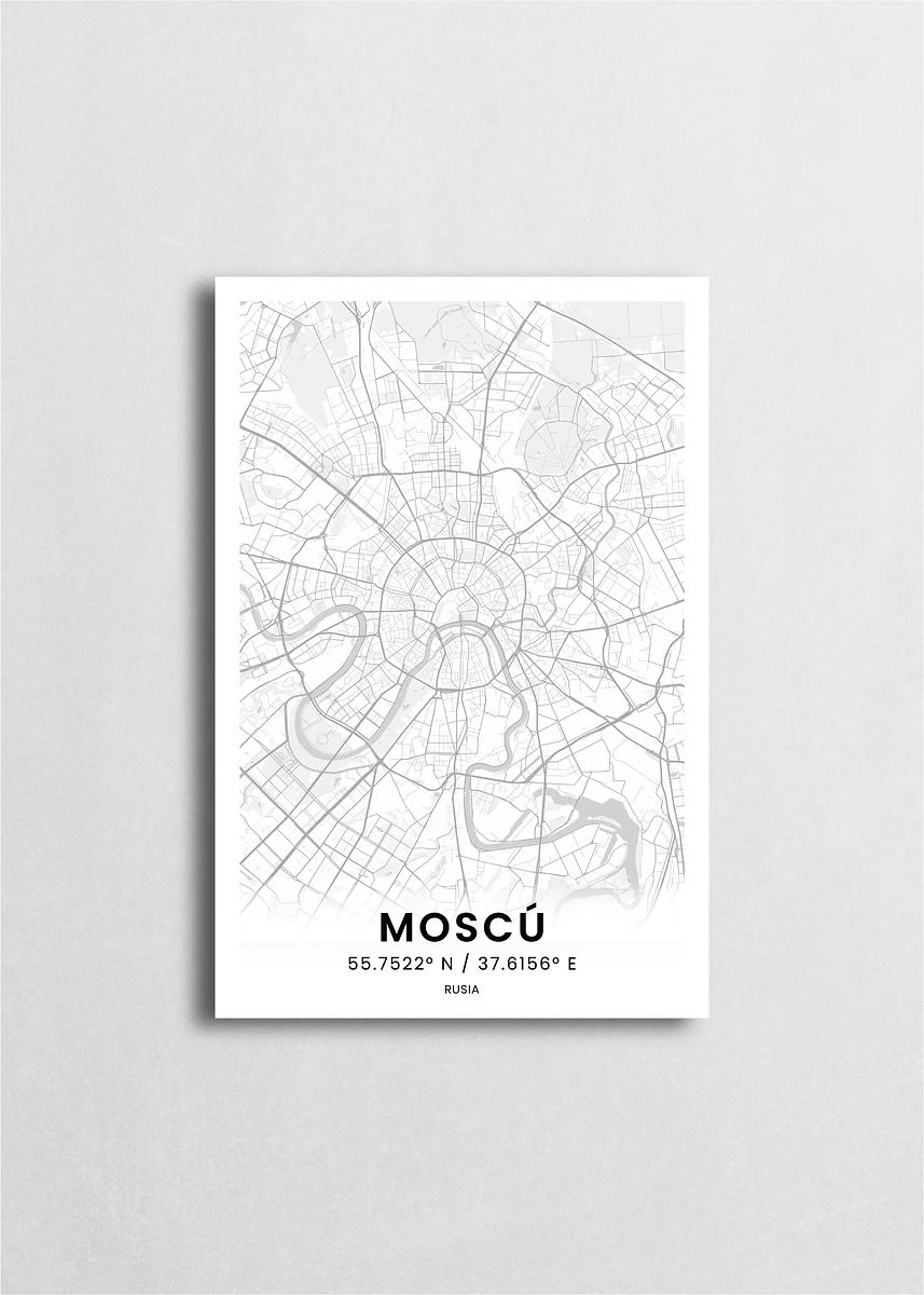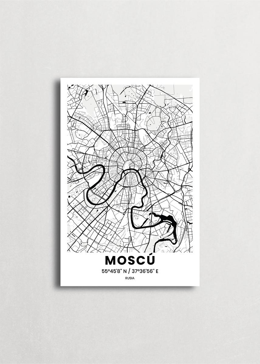 Mapa de la ciudad de Moscú diseño minimalista que destaca la forma y la estructura de la ciudad. sus colores crean un contraste llamativo que es atemporal y sofisticado.