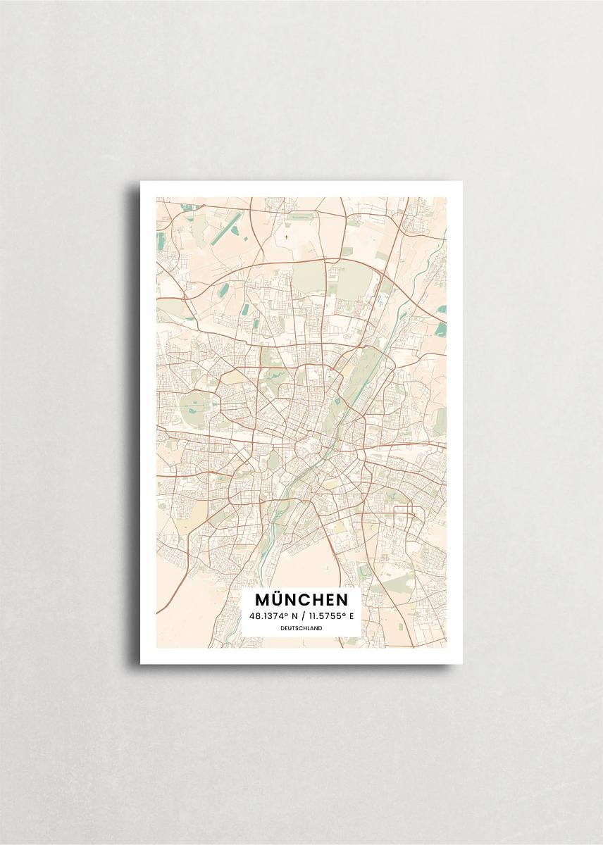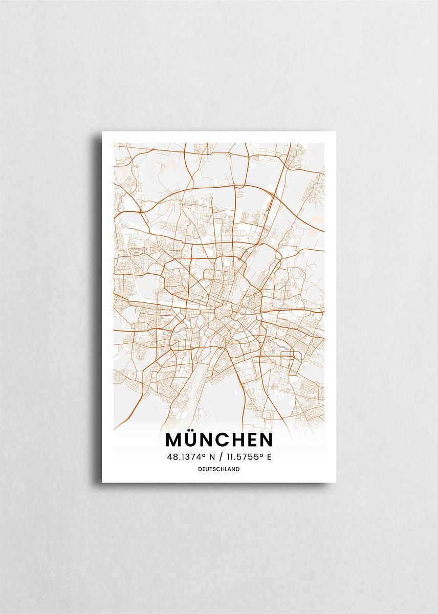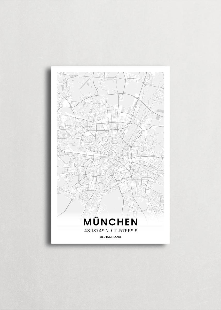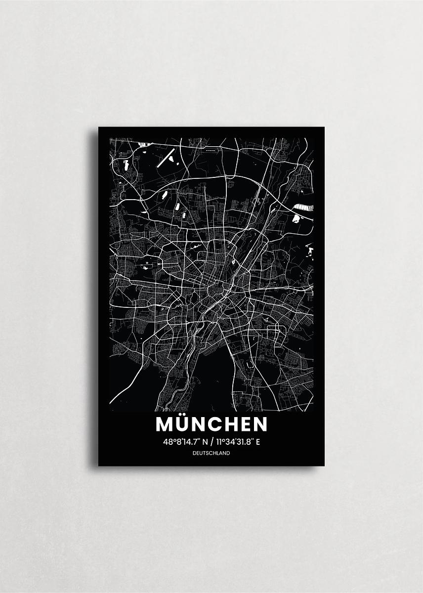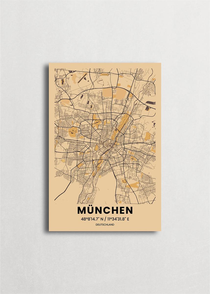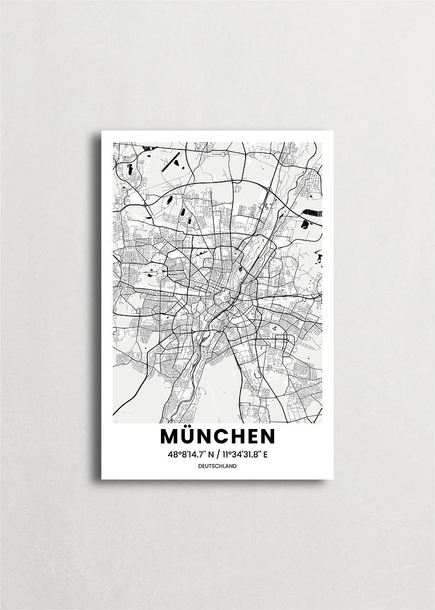 Mapa de la ciudad de Múnich diseño minimalista que destaca la forma y la estructura de la ciudad. sus colores crean un contraste llamativo que es atemporal y sofisticado.