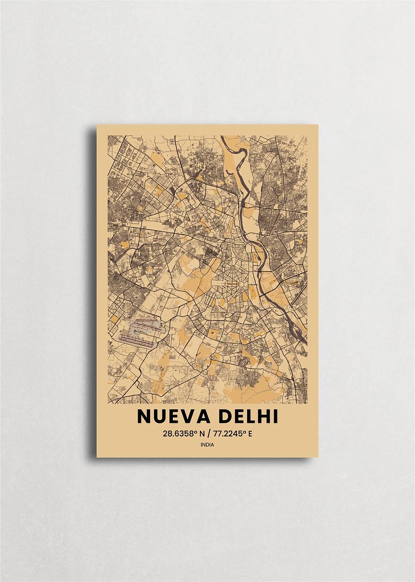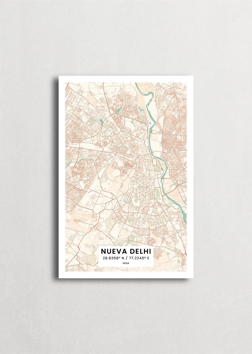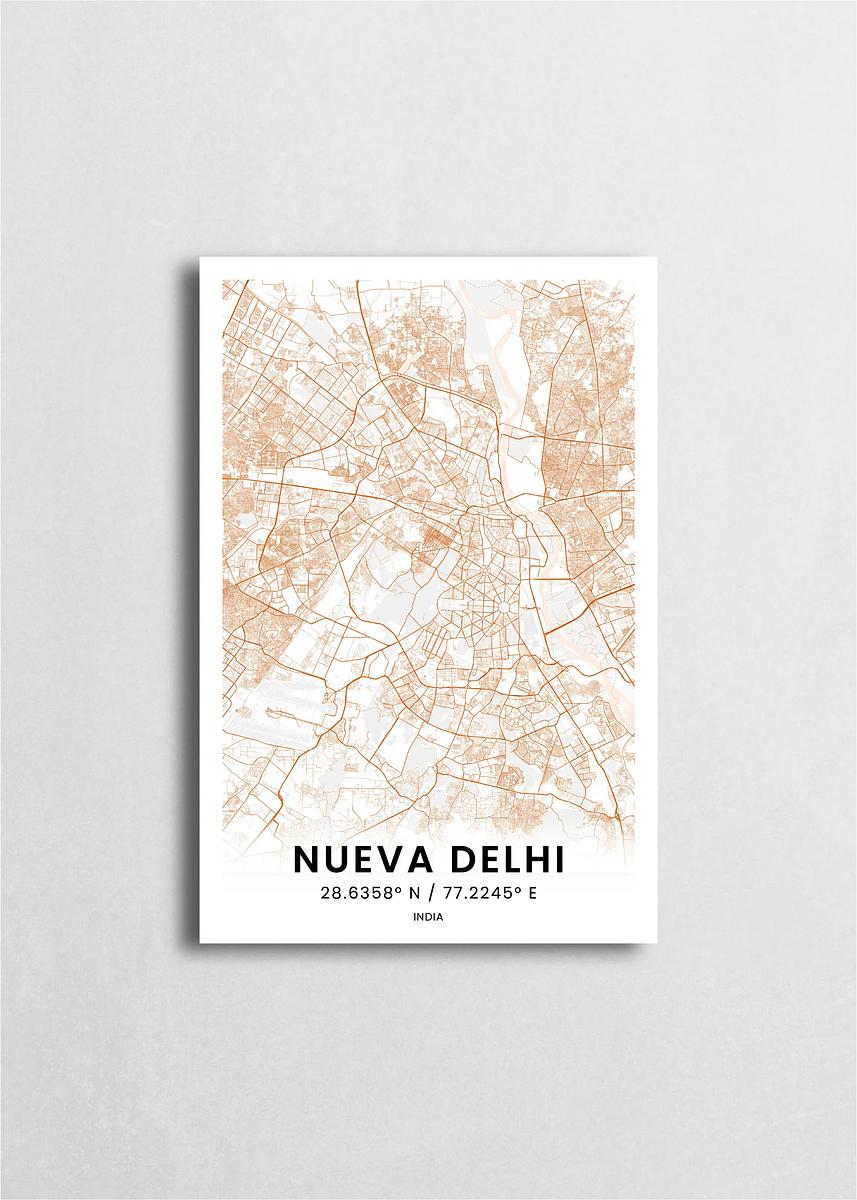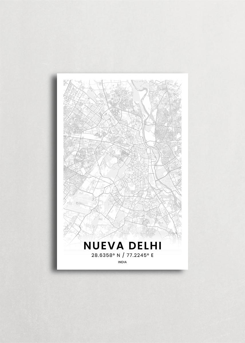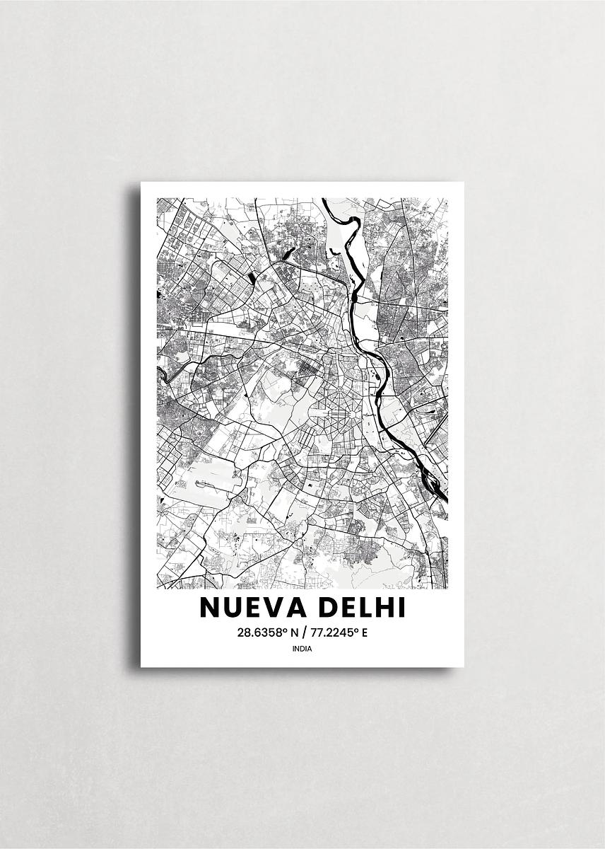 Mapa de la ciudad de Nueva Delhi diseño minimalista que destaca la forma y la estructura de la ciudad. sus colores crean un contraste llamativo que es atemporal y sofisticado.