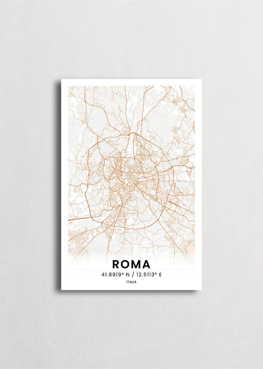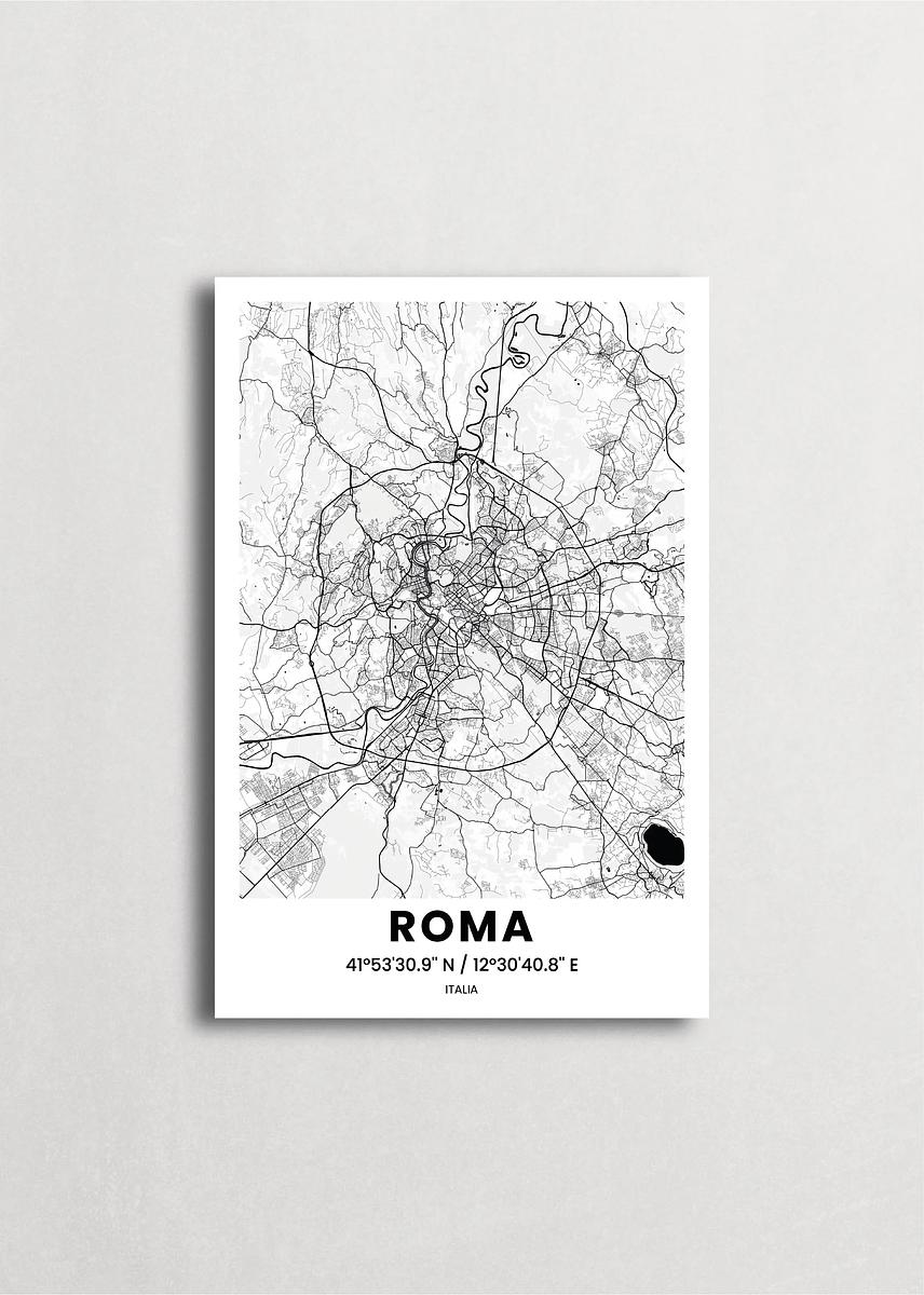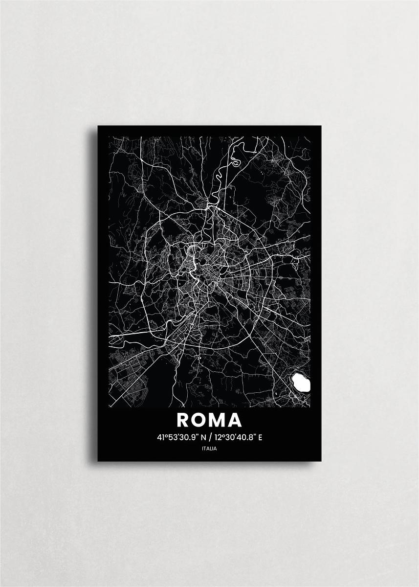 Mapa de la ciudad de Roma diseño minimalista que destaca la forma y la estructura de la ciudad. sus colores crean un contraste llamativo que es atemporal y sofisticado.