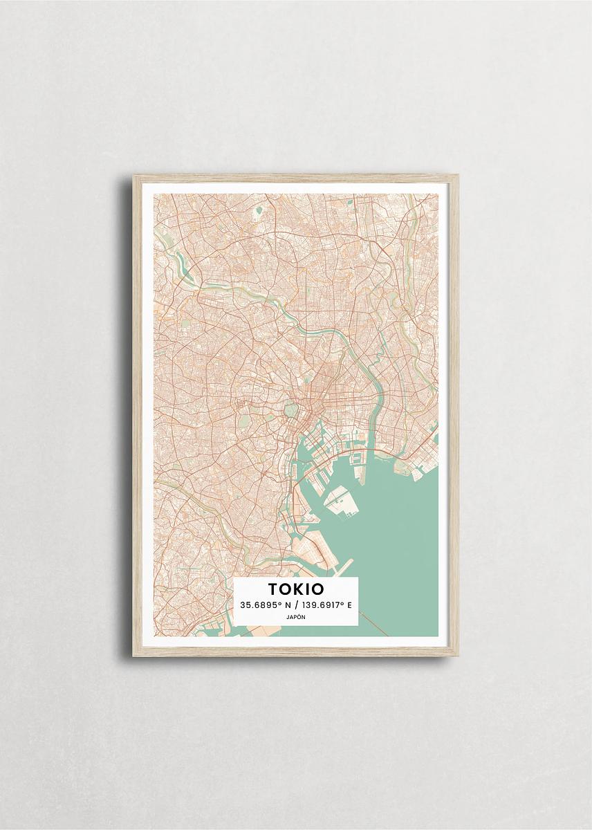 Mapa de la ciudad de Tokio diseño minimalista que destaca la forma y la estructura de la ciudad. sus colores crean un contraste llamativo que es atemporal y sofisticado.