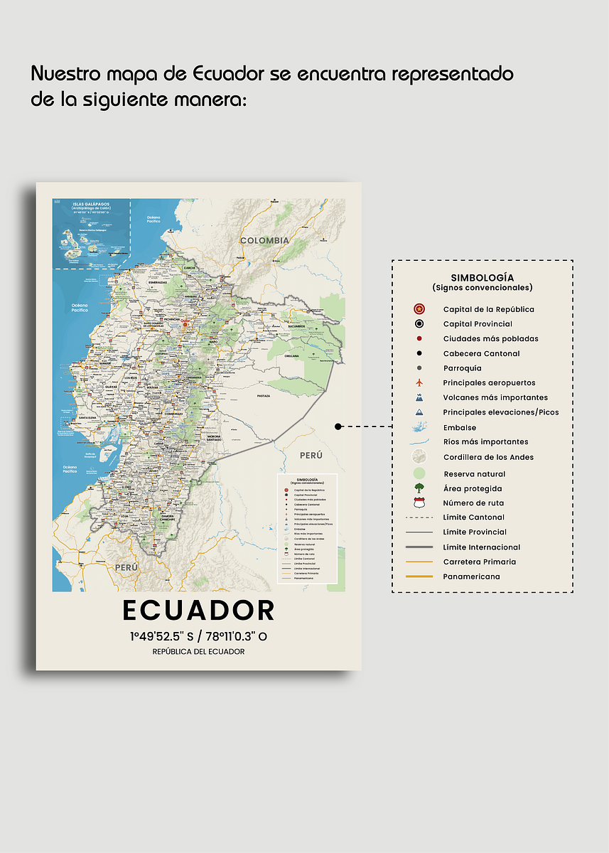 Mapa de Ecuador se encuentra representado de la siguiente manera: