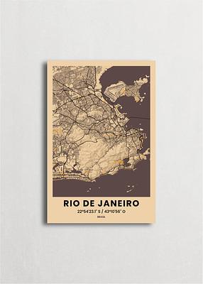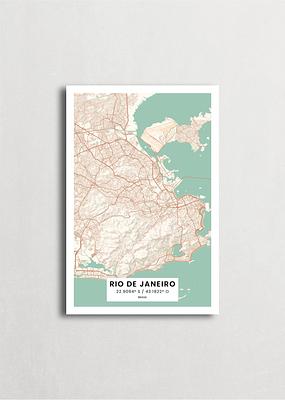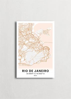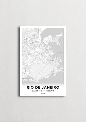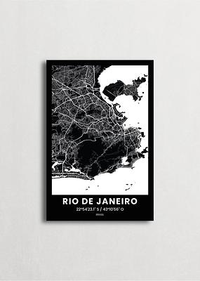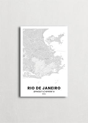 Mapa de la ciudad de Río de Janeiro diseño minimalista que destaca la forma y la estructura de la ciudad. sus colores crean un contraste llamativo que es atemporal y sofisticado.