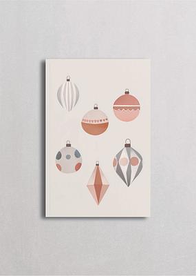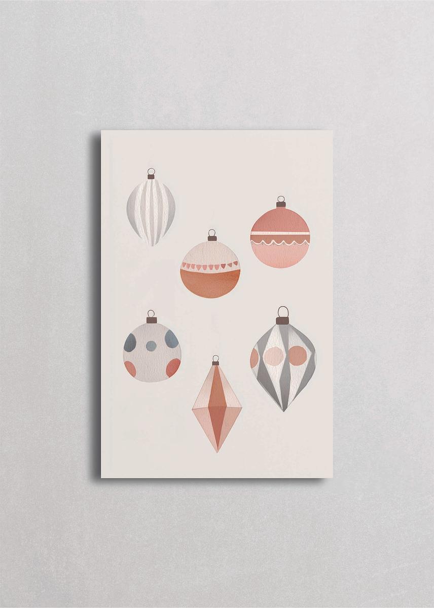 Colección de esferas navideñas en tonos tierra, rosados y grises con patrones geométricos únicos. Esta composición minimalista celebra la elegancia de los adornos vintage con un diseño contemporáneo y sofisticado. Ideal para espacios modernos que buscan un toque festivo sin saturar, combinando la tradición navideña con estética escandinava limpia y refinada.
